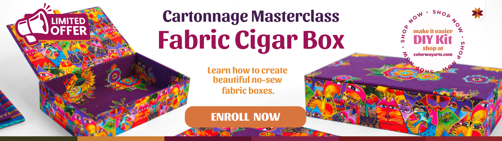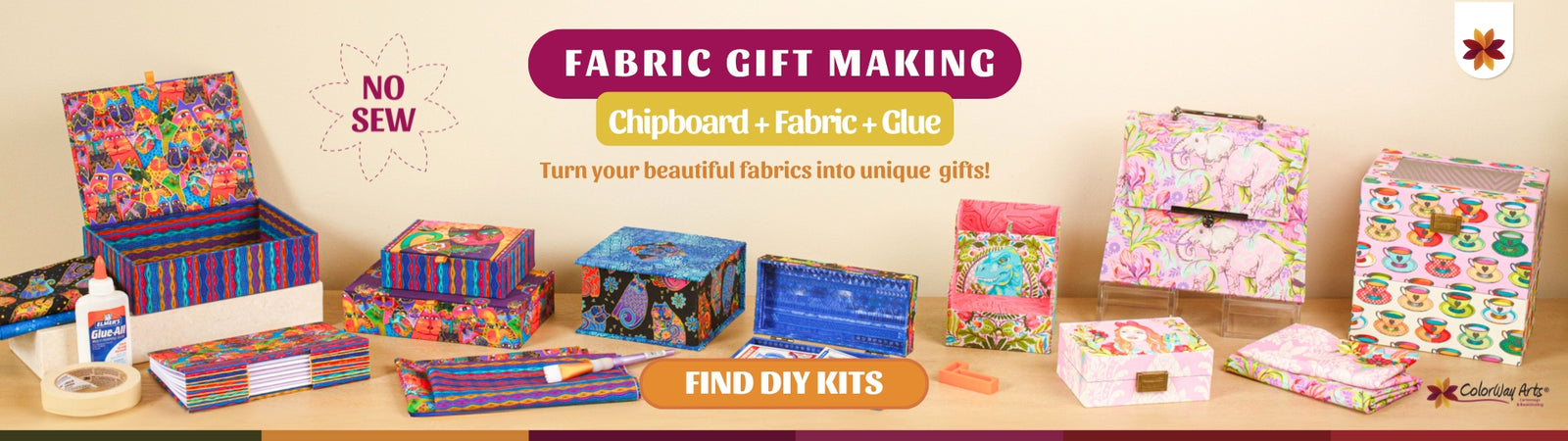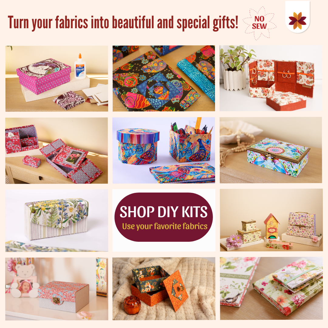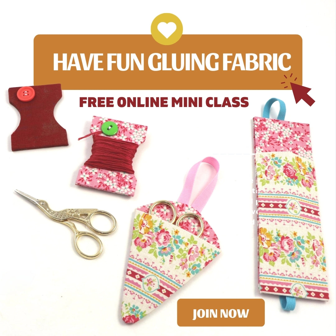 Not sure if having fun with fabric with no-sewing is for you? So, this Free online mini class is for you. Have fun gluing fabric and making bookmarks, thread holders and scissors cases while learning the basics of the technique and how to have great finishing on all of your projects! Get started now!