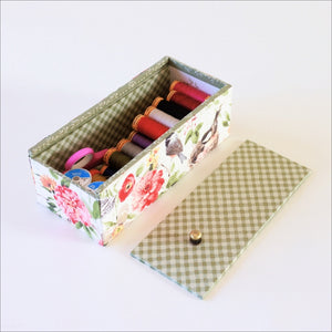This DIY cartonnage Kit comes with all cardboard you need to make your Medium sliding lid fabric box, as shown in the pictures. The pieces of paper (chipboard and poster board) are precut in the right sizes you need for this project. The finished box will be 8.5” x 3 7/8” x 3”. No worries about cutting paper, is all there ready for you to use! Fabric and other contents showed in pictures are not included. Small metal knob (random color) is included. We also sell packages of knobs in different sizes in our shop in case you prefer.