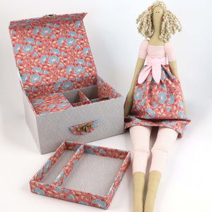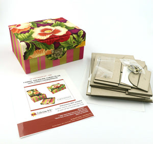 This DIY cartonnage Kit comes with all cardboard you need to make your own fabric treasure chest with dividers and tray, as shown in the pictures. The pieces of paper (chipboard and poster board) are precut in the right sizes you need for this project. The finished box will be 8 1/4" x 6 1/2" x 4". With this DIY kit there is no worries about cutting paper. The chipboard used in this kit is 100 point (0.1 in) thick, extra heavy, so this box will be very sturdy and well finished! Metal clasp included. Fabric and other contents showed in pictures are not included. Hardware (metal clasp with brads, small metal knob and disc magnets) are included.