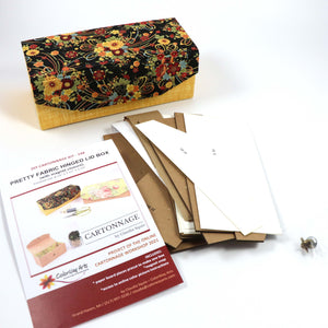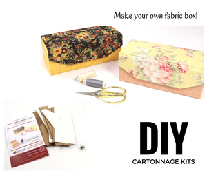 This DIY cartonnage Kit comes with magnet and all cardboard you need to make your own fabric hinged lid box with magnet closure, as shown in the pictures. The pieces of chipboard and poster board are precut in the right sizes you need for this project. The finished box will be 8 3/8" x 3 3/4" x 3 3/8". With this DIY kit there is no worries about cutting paper. The chipboard used in this kit is 100 point (0.1 in) thick, extra heavy, so this box will be very sturdy and well finished! Fabric and other contents showed in pictures are not included.
